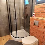 Neben einem Steinkamin bietet die Mazurski Klimat Annehmlichkeiten wie einen Flachbildfernseher mit Satellitenkanälen. Zur Ausstattung des Badezimmers gehören eine getrennte Toilette und eine Dusche sowie ein Haartrockner und Badelaken.